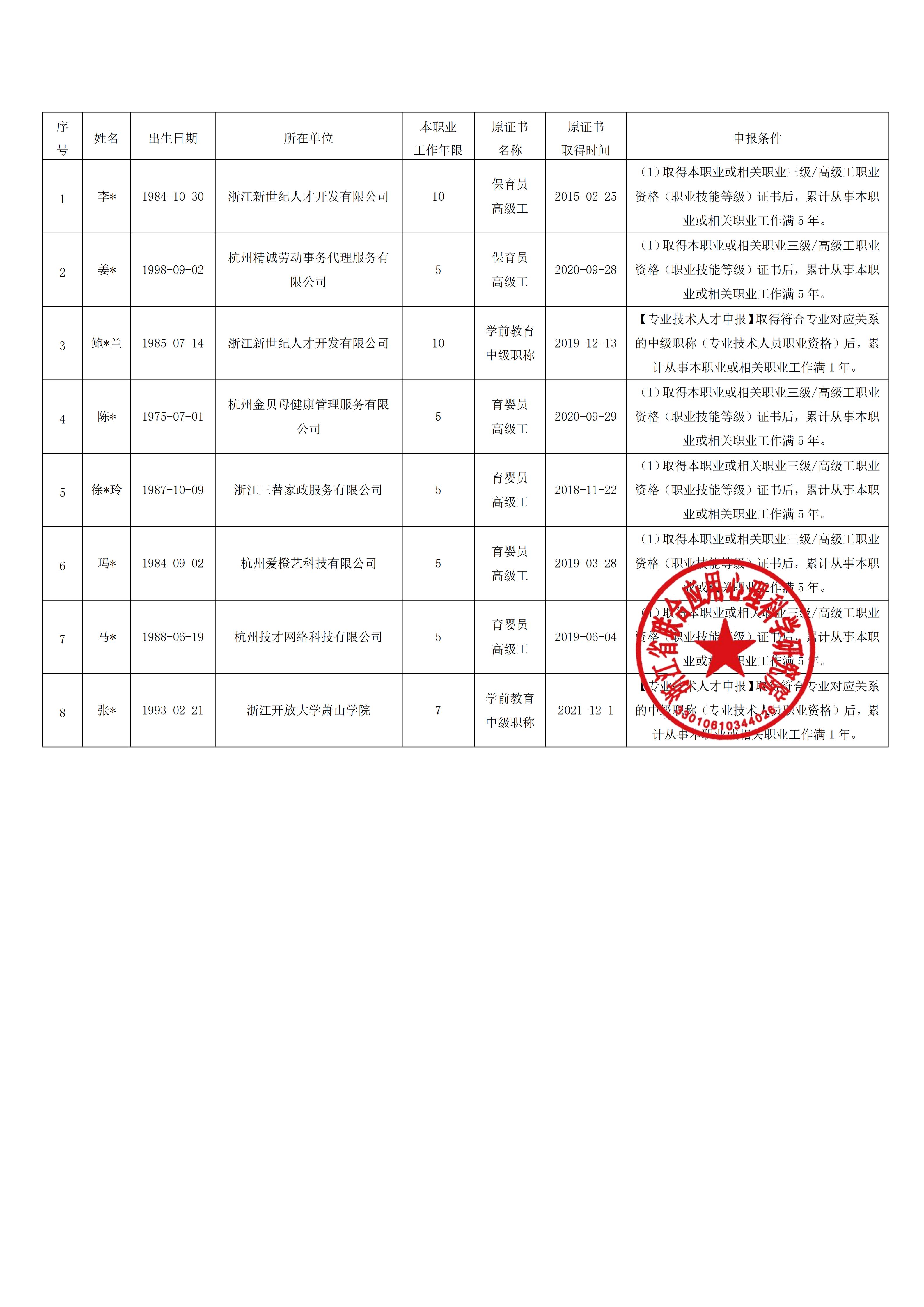 2025年9月婴幼儿发展引导员(育婴员)职业技能等级认定高级工(三级)合格人员名单公示