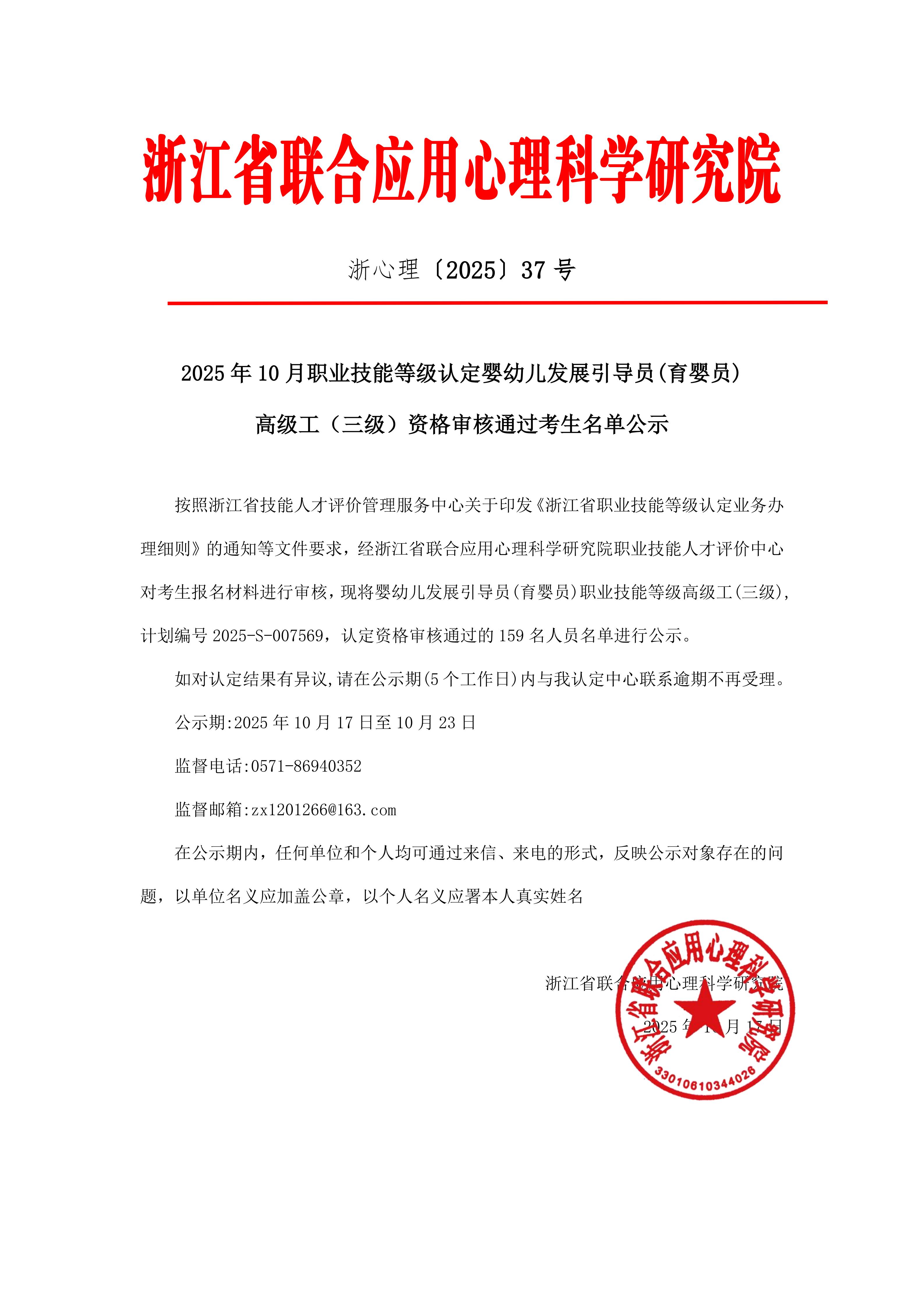2025年10月职业技能等级认定婚姻家庭辅导师 高级工(三级)资格审核通过考生名单公示