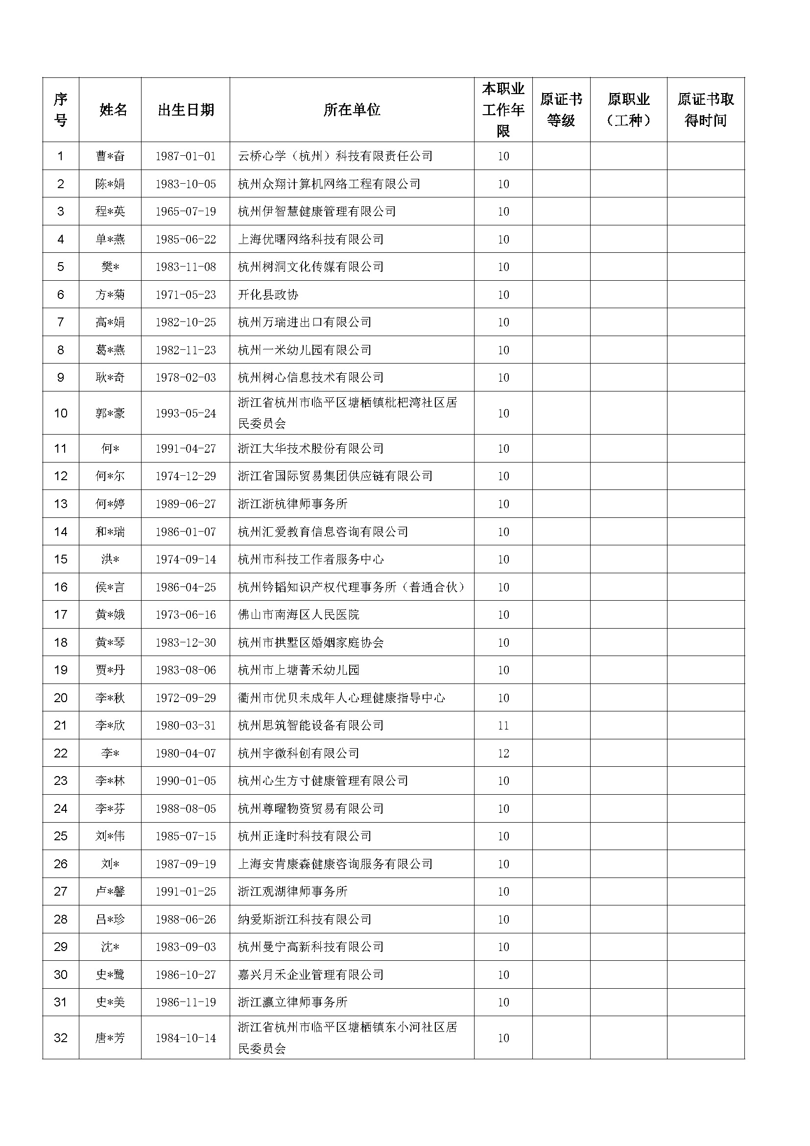 2025年10月职业技能等级认定婴幼儿发展引导员(育婴员) 高级工(三级)资格审核通过考生名单公示