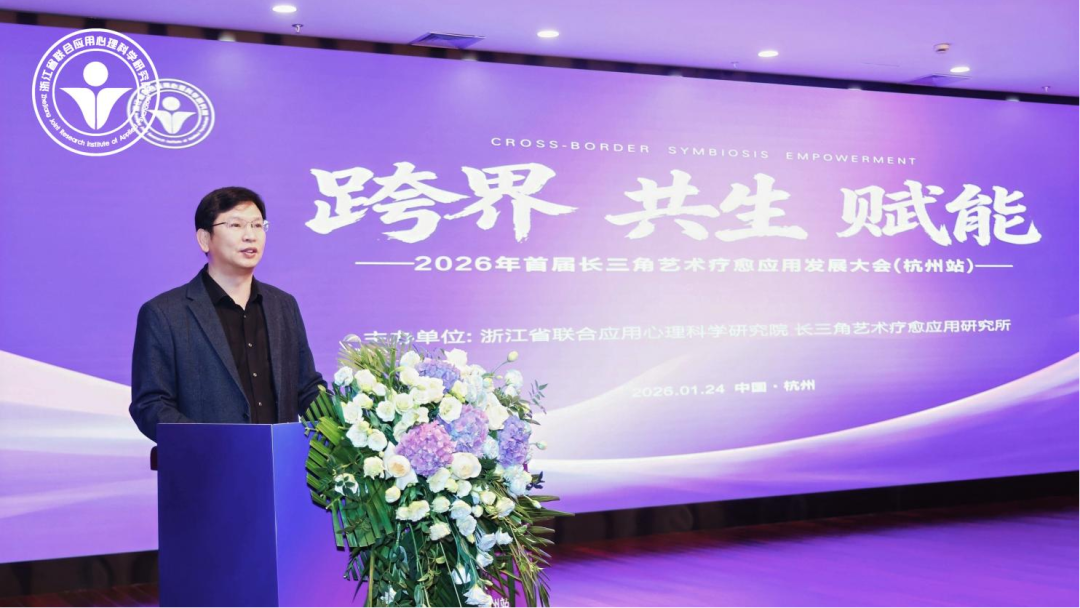 2026年1月24日,杭州,冬意微寒,但浙江省职工服务中心内却暖意融融,思想碰撞的热潮与艺术疗愈的能量在此交汇。由浙江省联合应用心理科学研究院主办的首届“长三角艺术疗愈应用发展大会(杭州站)”隆重启幕。本次大会以“跨界·共生·赋能—艺术疗愈的多元应用场景”为主题,汇聚了来自心理学、艺术学、教育学、医学等多领域的专家学者、从业者及关注者约300人,共同探讨艺术疗愈在新时代的应用前景与发展路径,旨在推动艺术疗愈从专业实践走向更广泛的社会应用与服务,构建协同创新的长三角生态圈。