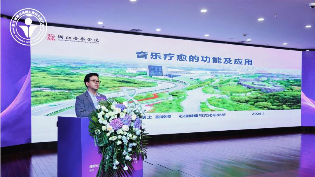 浙江音乐学院心理健康与文化研究所所长欧阳胜权副教授则以《音乐疗愈的主要应用领域》为题,梳理了音乐在心理干预中的多样化应用图景。他从神经科学、心理学和音乐学的交叉视角,阐述了音乐疗愈的生理,心理和社会功能,详细介绍了音乐疗愈在缓解焦虑抑郁、辅助疼痛管理、促进认知康复、提升团体凝聚力以及在学校企事业单位和特殊教育等领域的具体应用模式与实证效果。