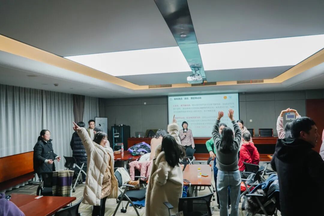 身体激活层面,音乐与温和运动成为改善睡眠的 “好帮手”。刘老师介绍,特定频率的声波能调节脑电波,如 α 波音乐就有助于放松,建议睡前 1 小时聆听 60-80BPM 的纯音乐,避免歌词干扰;适度运动可促进褪黑素分泌,如太极、瑜伽、慢舞等。讲座现场,刘老师还组织了互动练习,让观众两人一组相互模仿动作,在轻松氛围中激活身体状态。