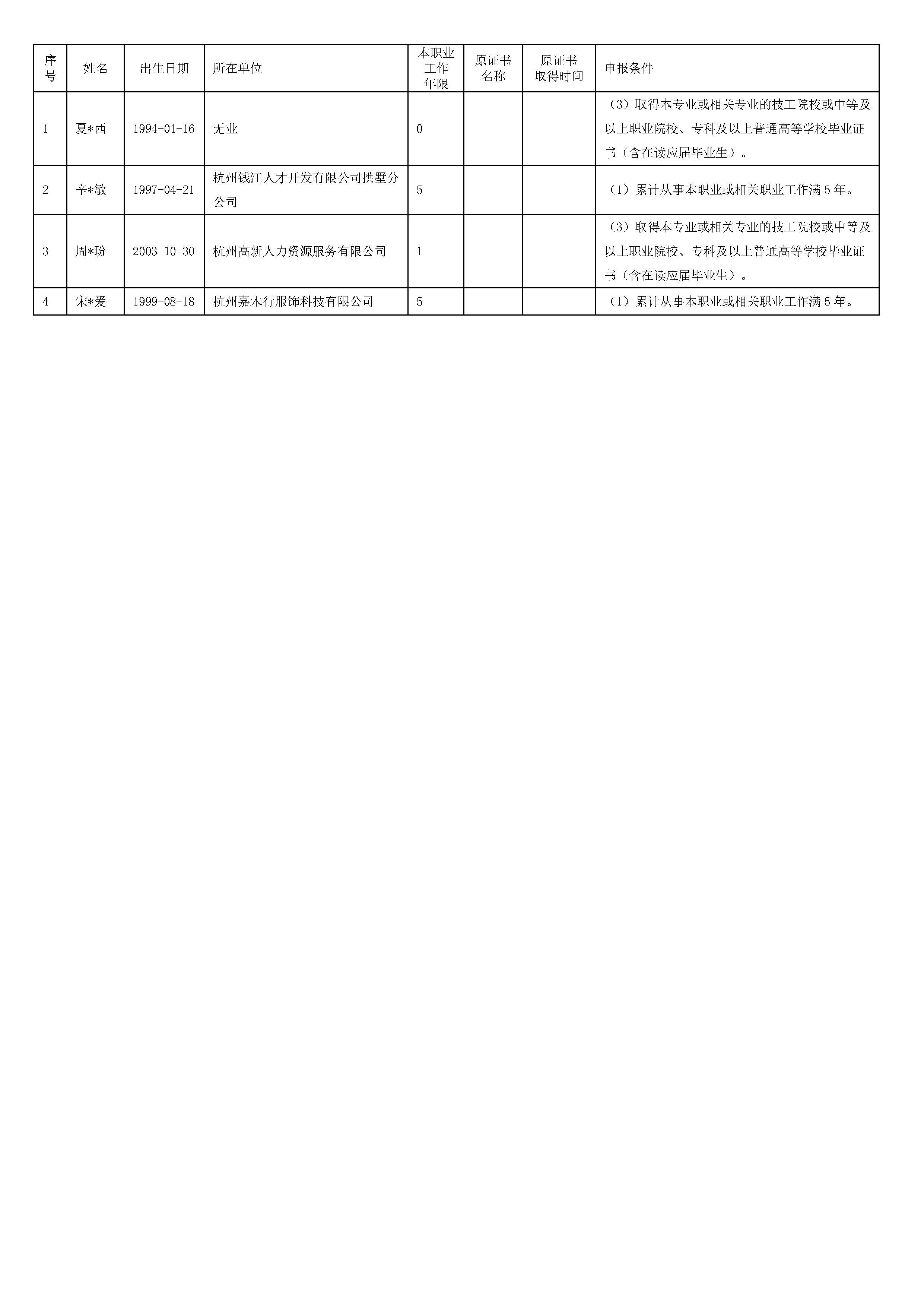 2026年3月职业技能等级认定婴幼儿发展引导员(育婴员)高级工(三级)资格审核通过考生名单公示