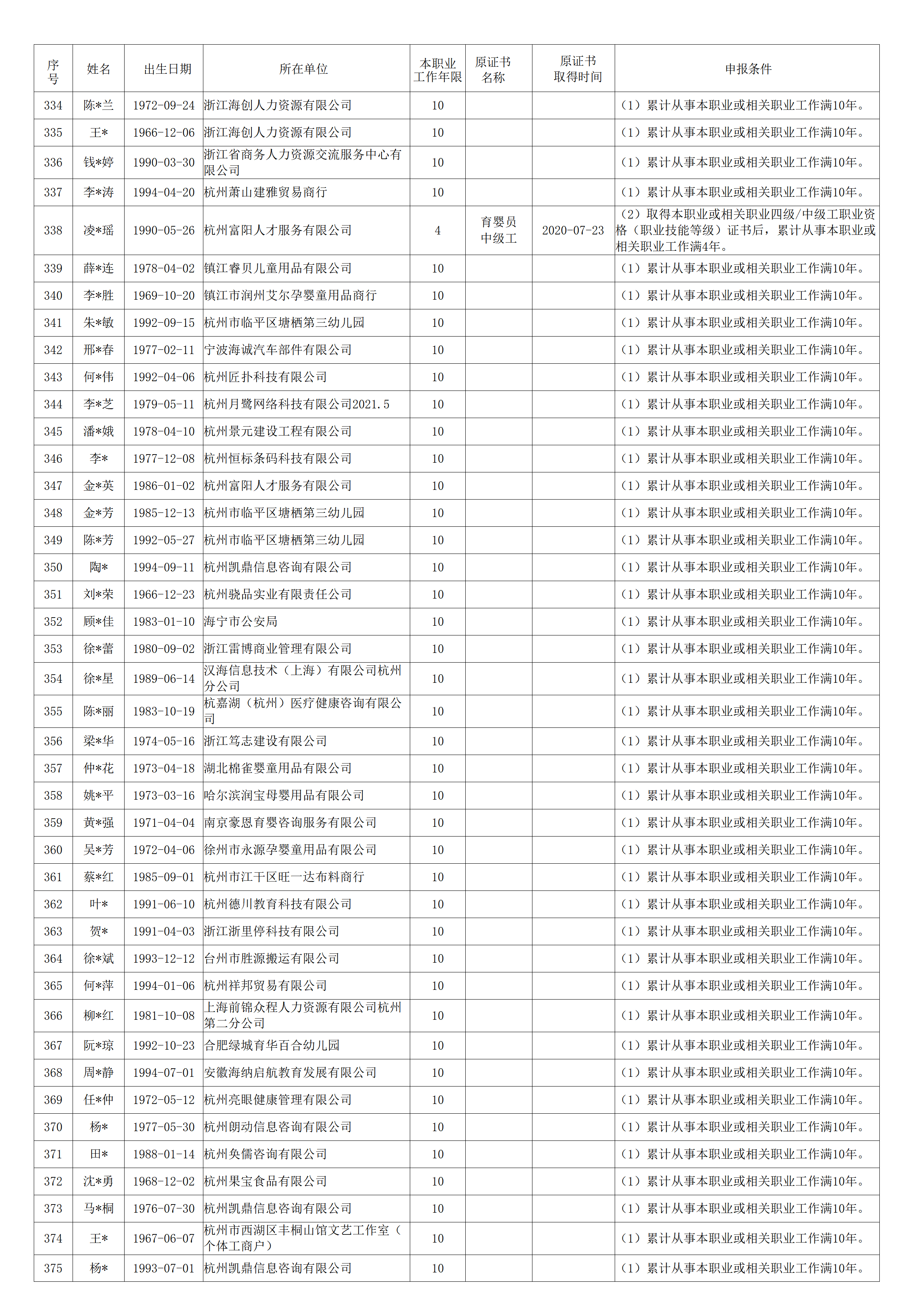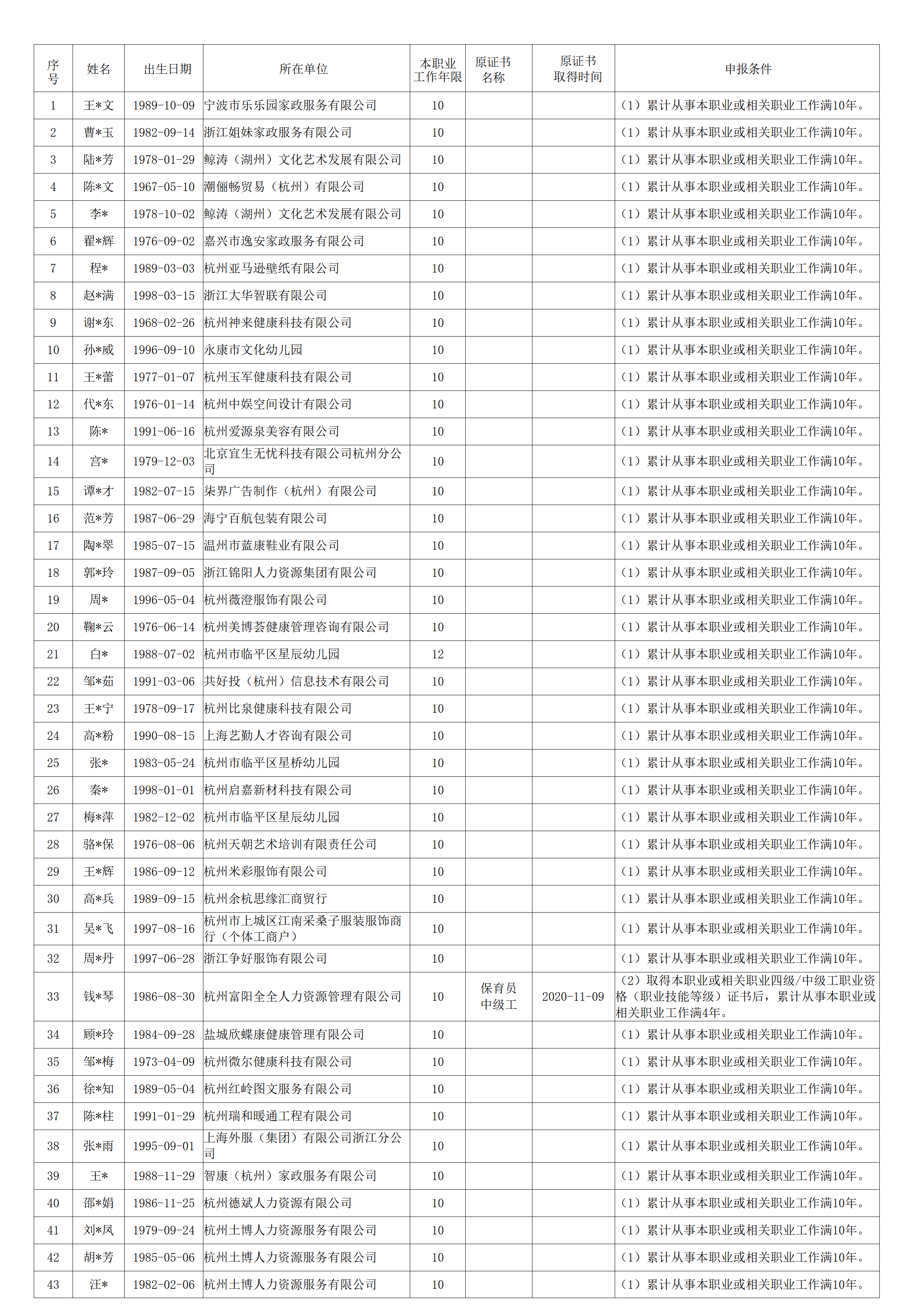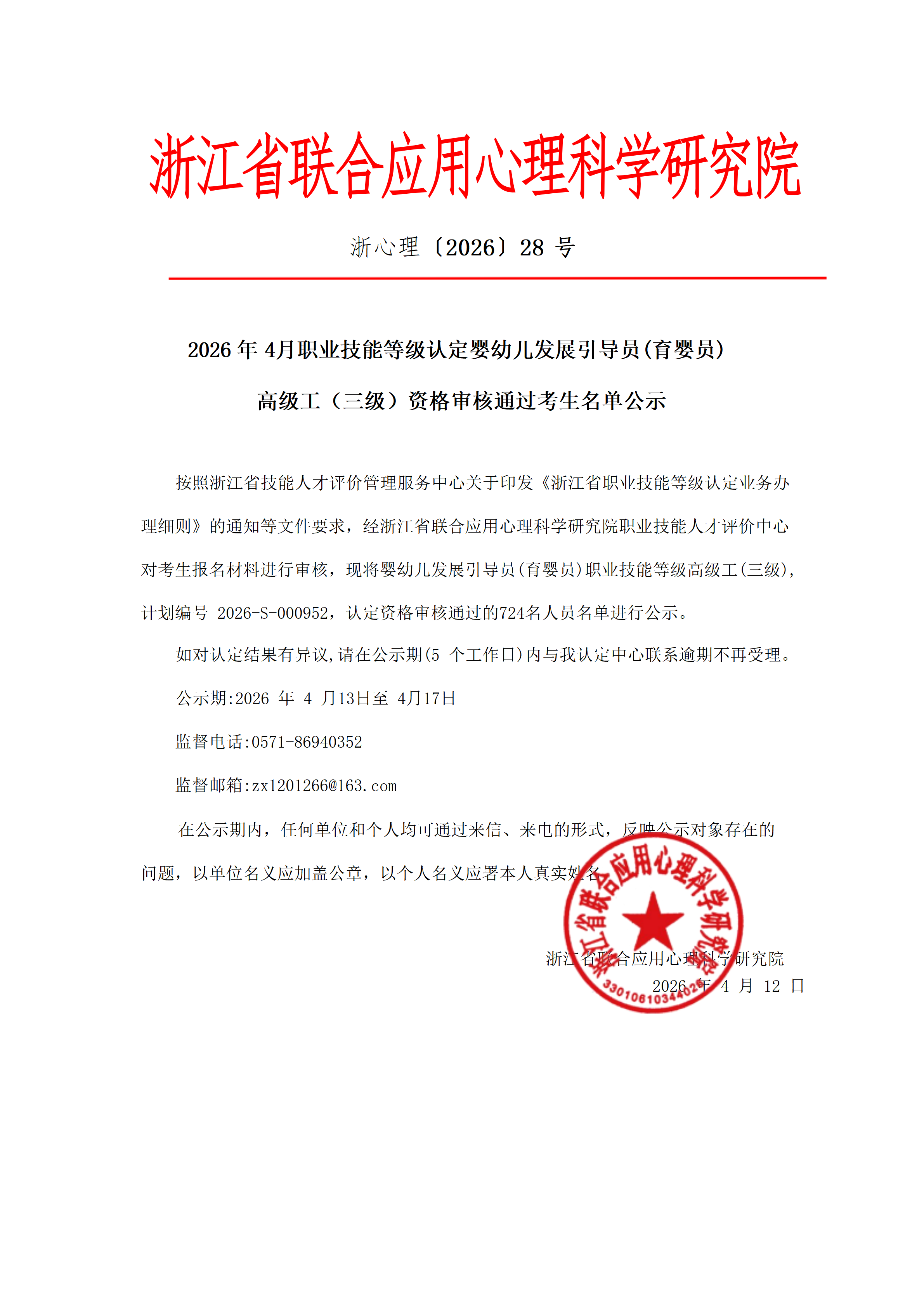 2026年4月职业技能等级认定婴幼儿发展引导员中级工(四级)资格审核通过考生名单公示