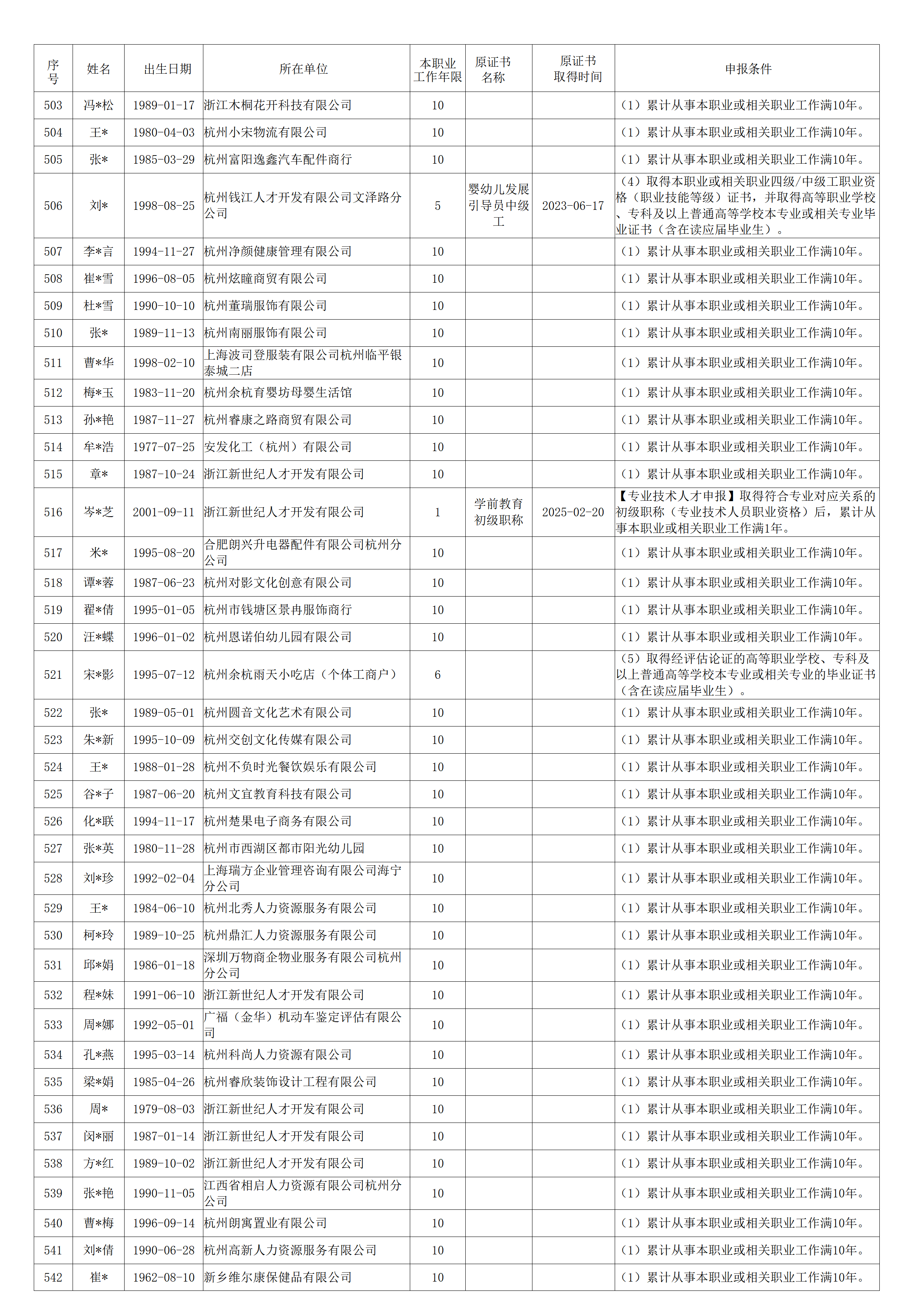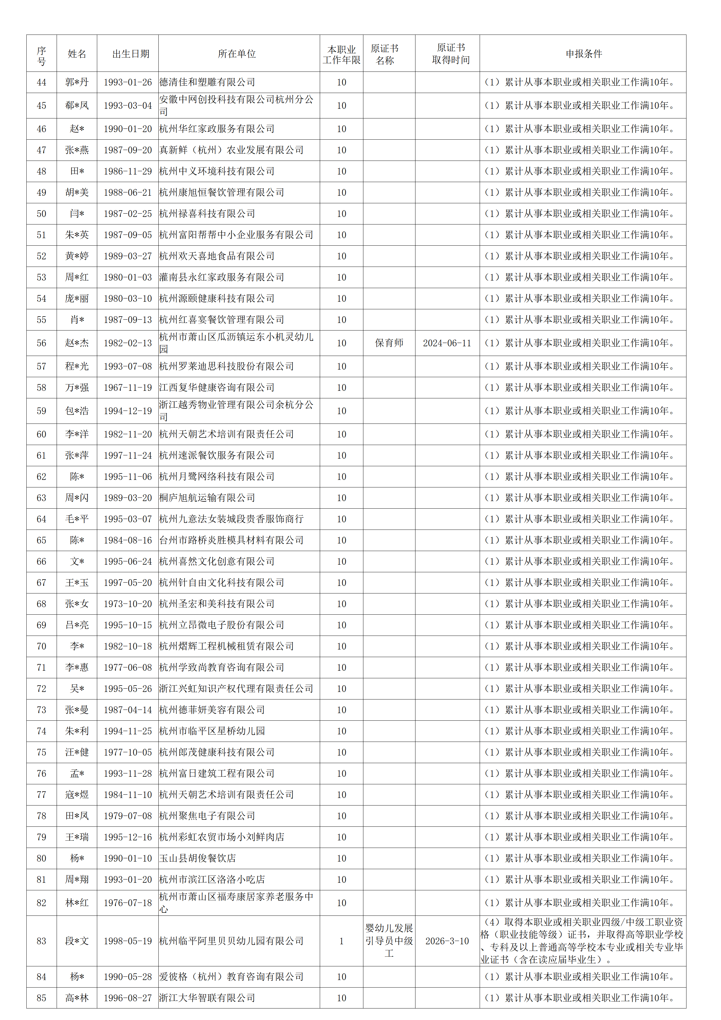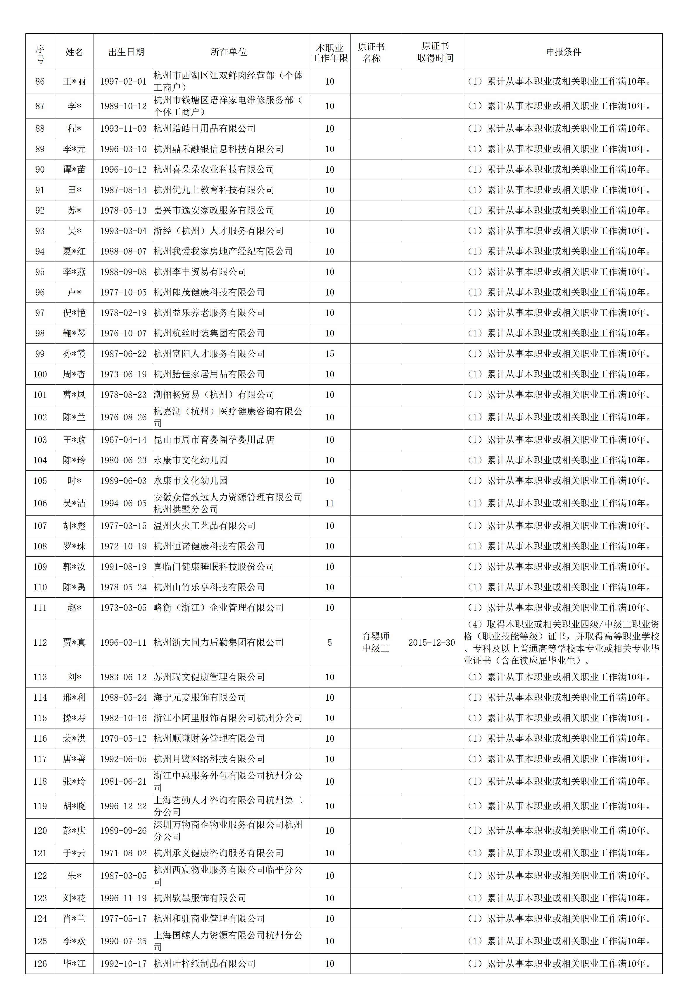 2026年4月职业技能等级认定婴幼儿发展引导员中级工(四级)资格审核通过考生名单公示