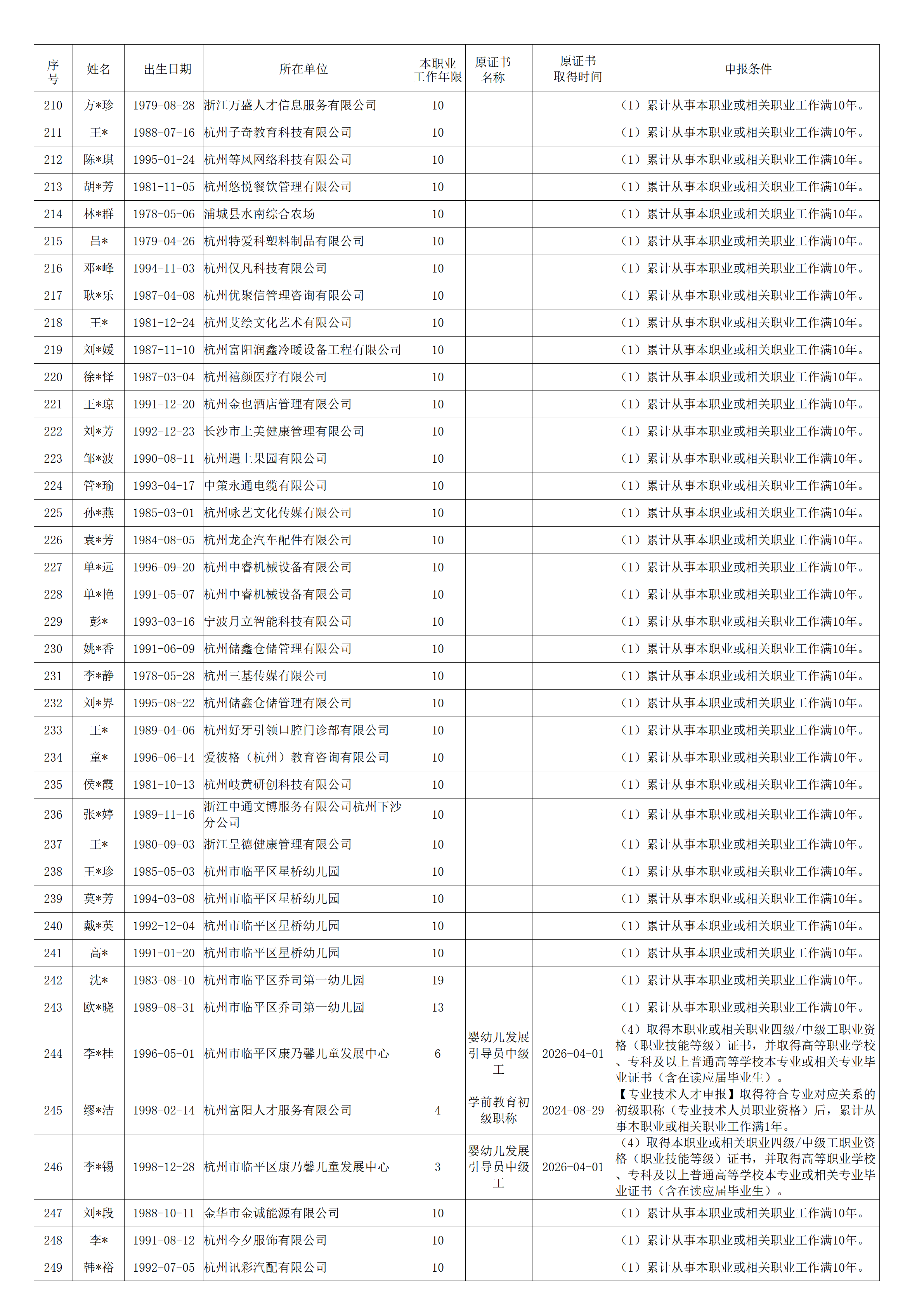 2026年2月婴幼儿发展引导员职业技能等级认定技师(二级)合格人员名单公示