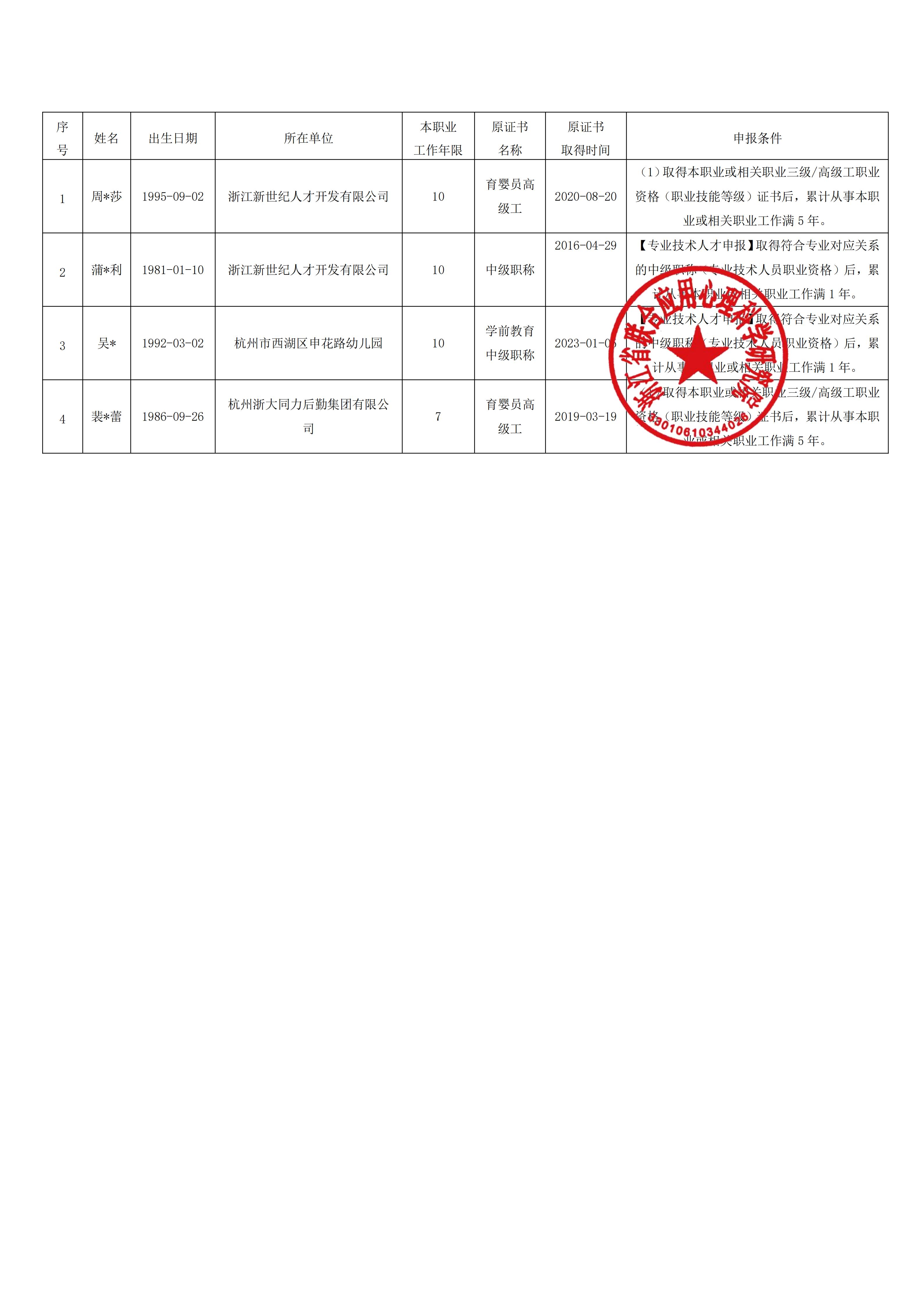 2025年9月职业技能等级认定婴幼儿发展引导员(育婴员) 高级工(三级)资格审核通过考生名单公示