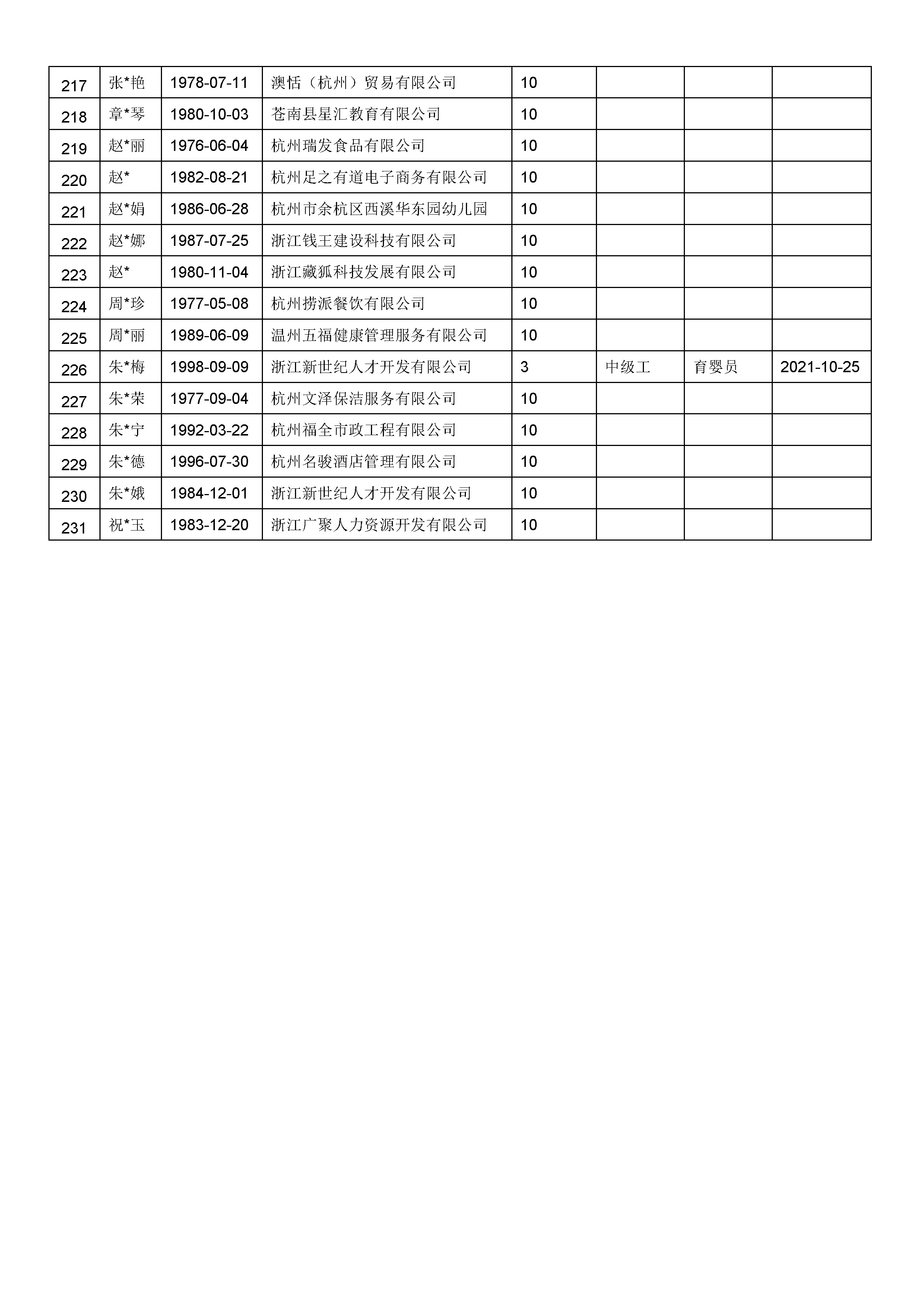 2025年11月职业技能等级认定婴幼儿发展引导员中级工(四级)资格审核通过考生名单公示