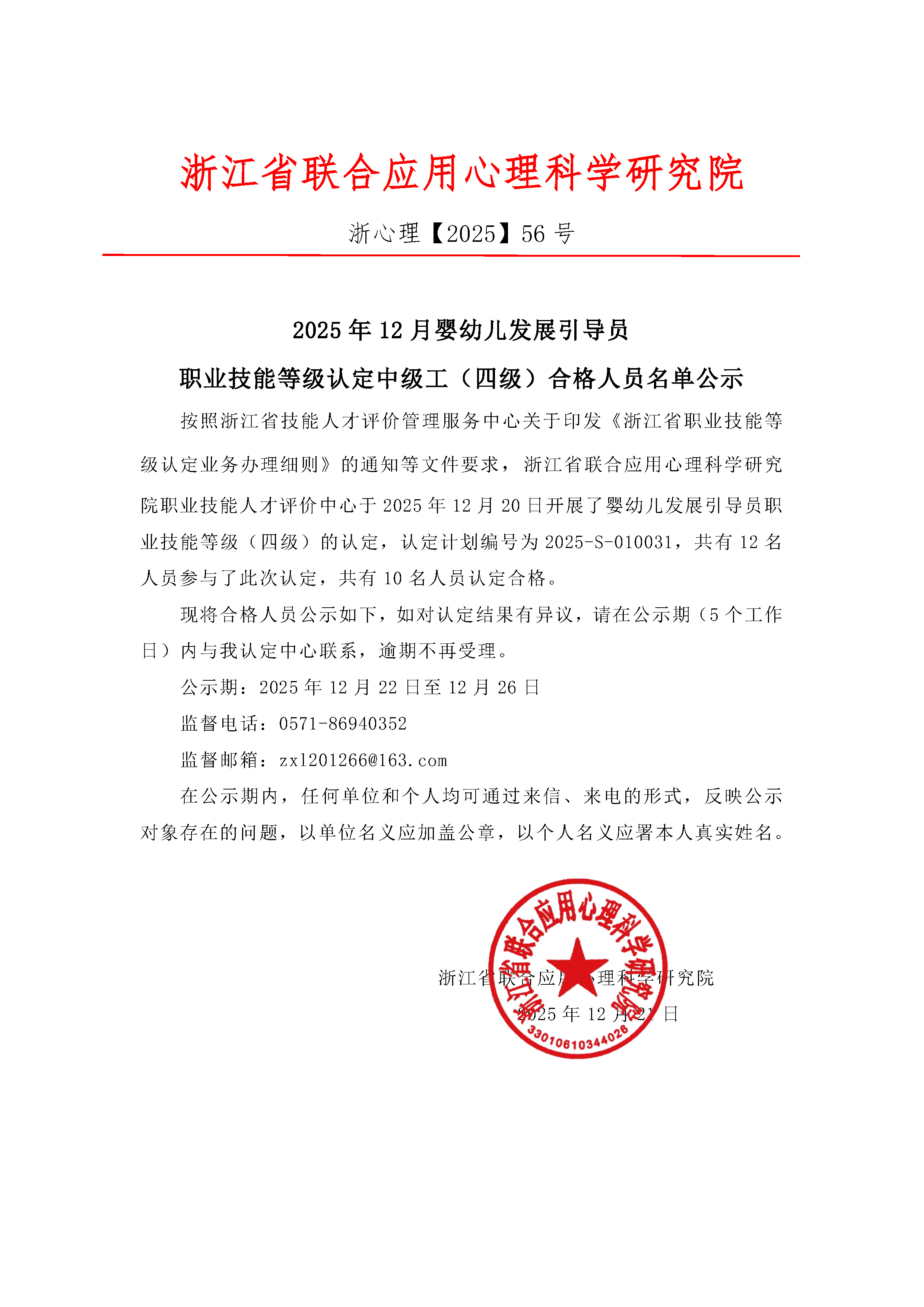 2025年12月婴幼儿发展引导员职业技能等级认定中级工(四级)合格人员名单公示