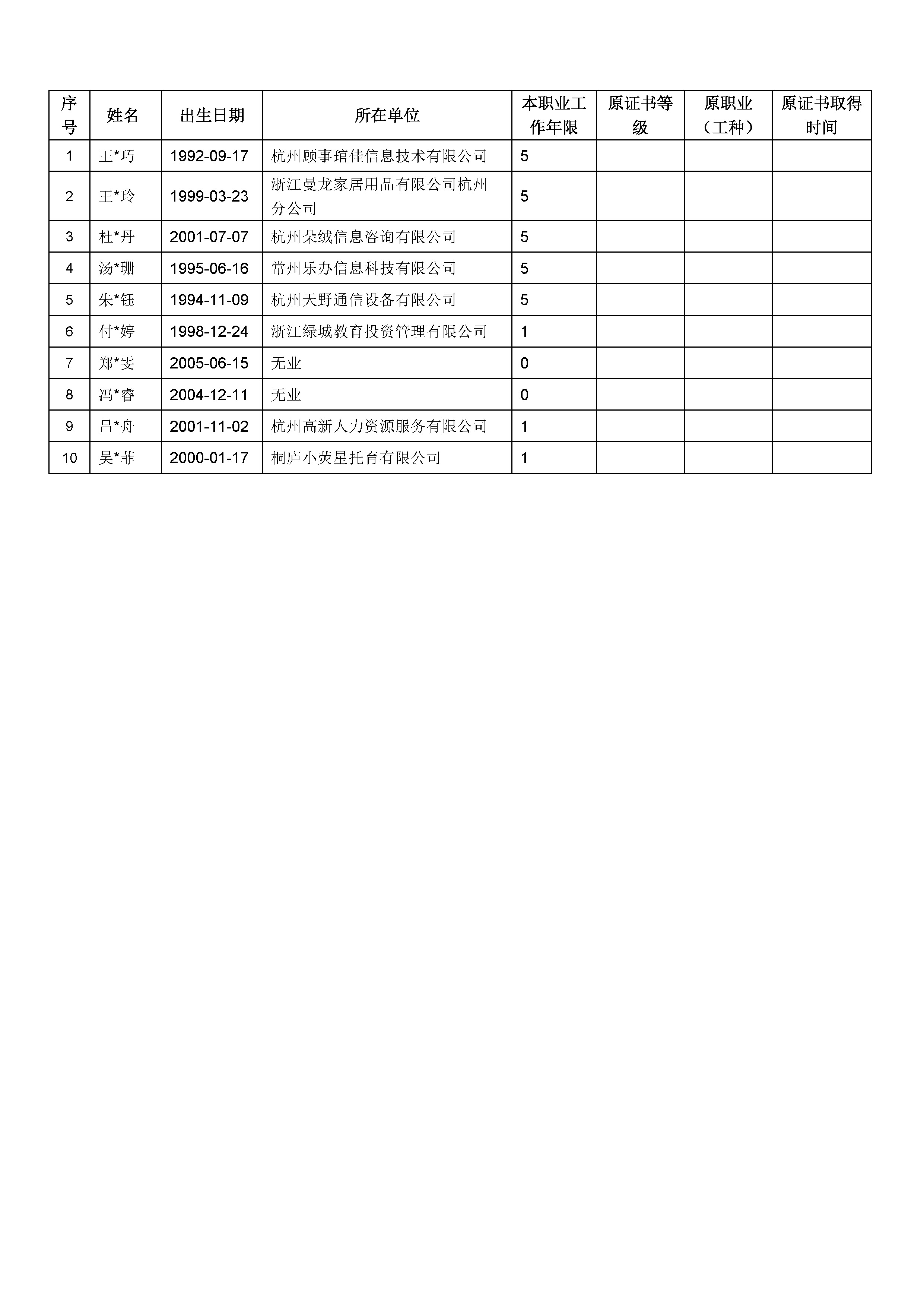 2025年12月婴幼儿发展引导员(育婴员)职业技能等级认定高级工(三级)合格人员名单公示