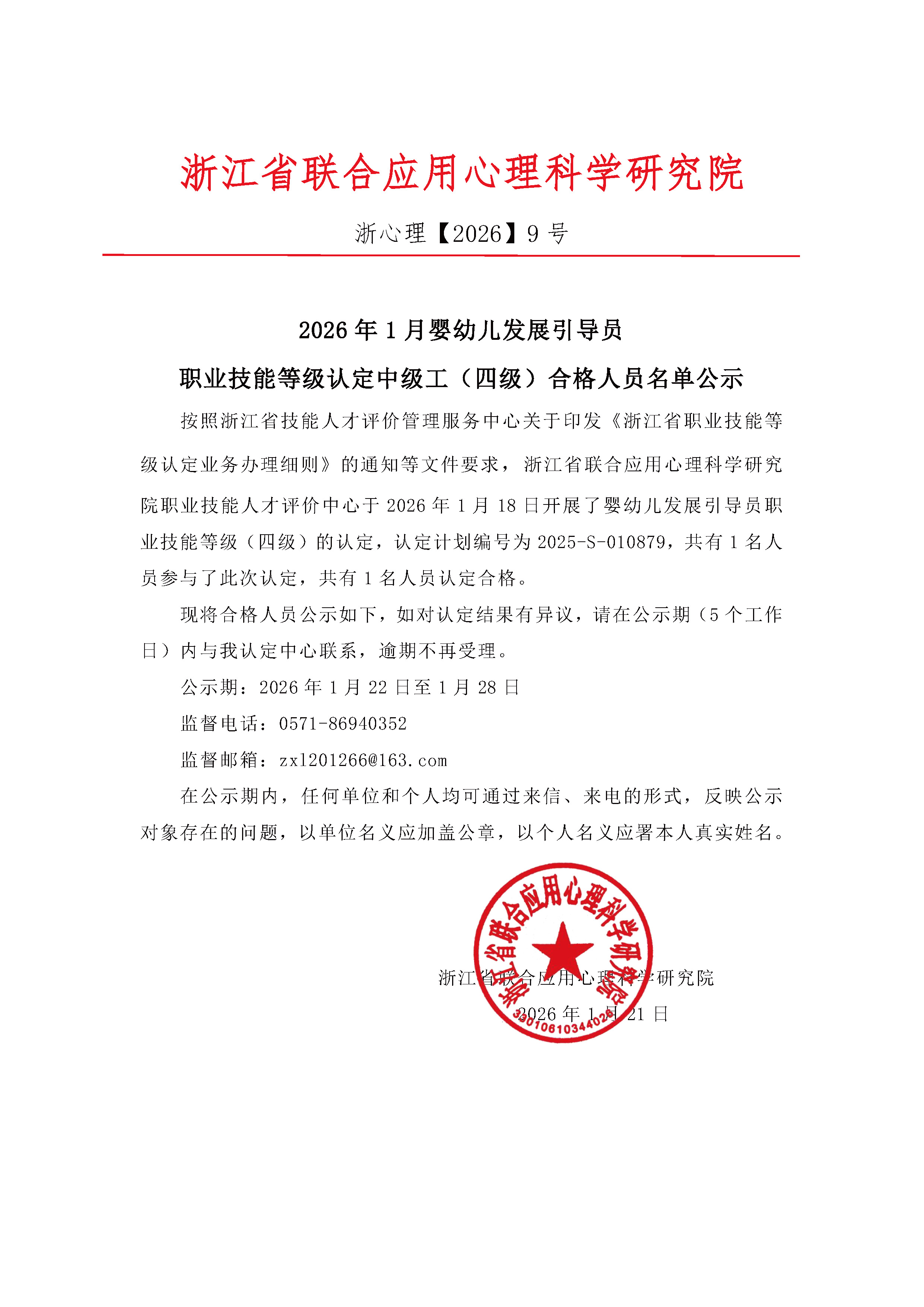 2026年1月婴幼儿发展引导员(育婴员)职业技能等级认定高级工(三级)合格人员名单公示