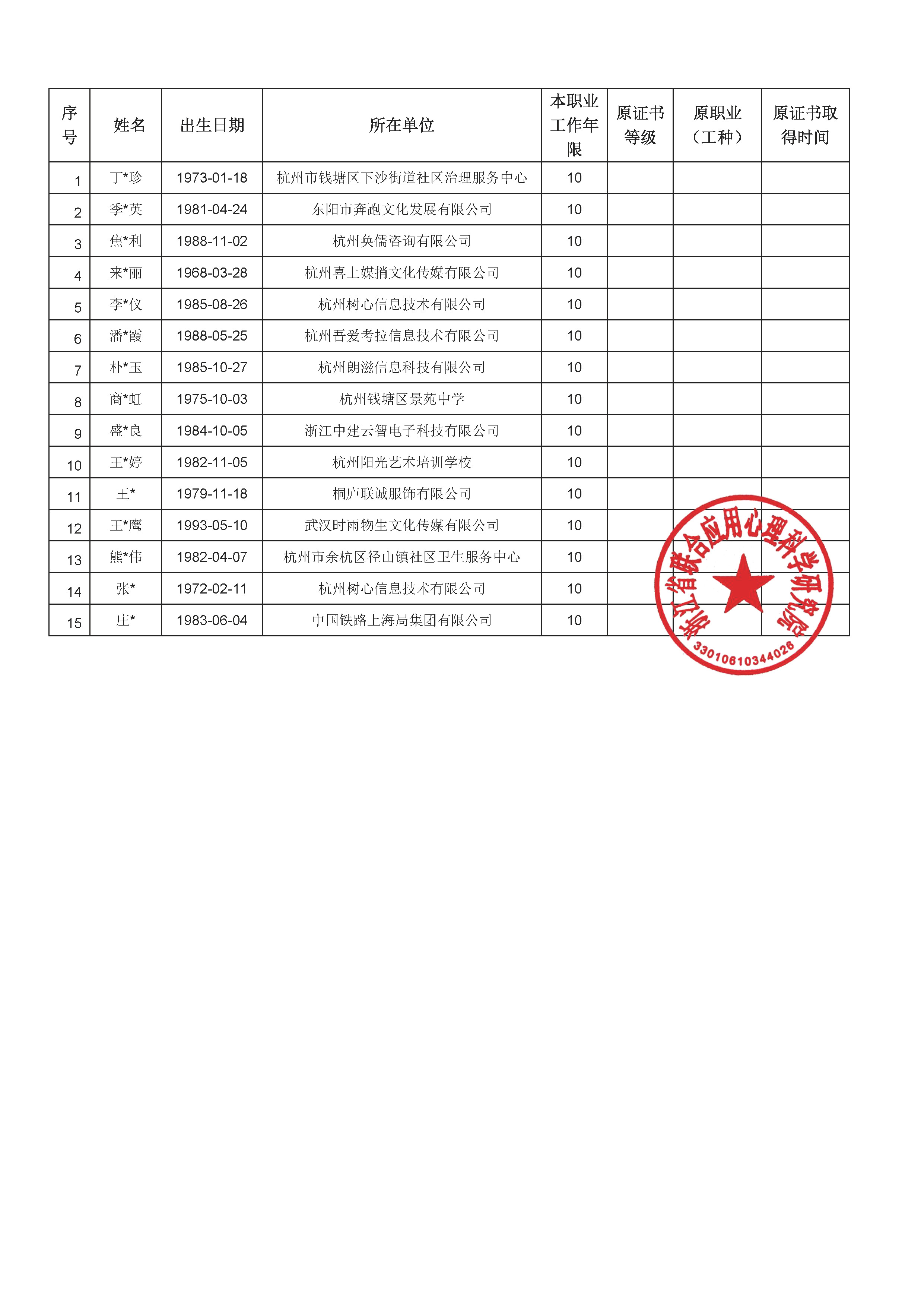 2026年1月职业技能等级认定婴幼儿发展引导员(育婴员)高级工(三级)资格审核通过考生名单公示