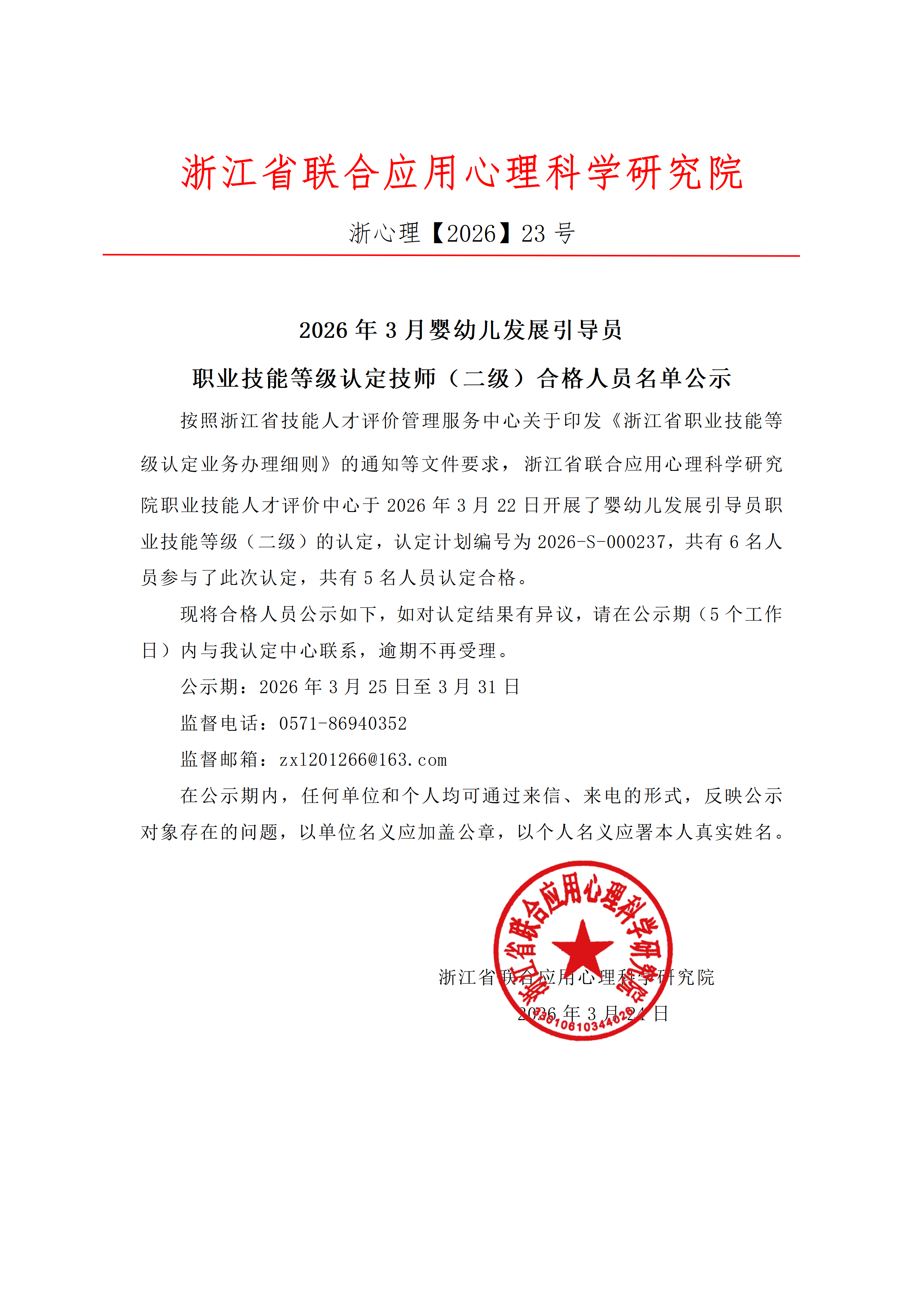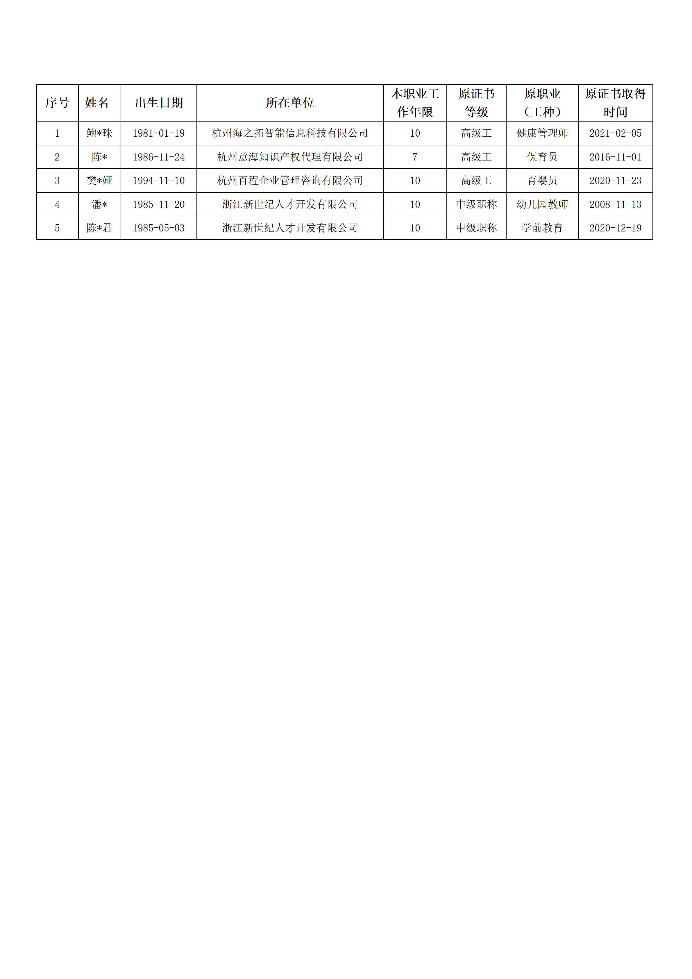 2026年2月职业技能等级认定婴幼儿发展引导员(育婴员)高级工(三级)资格审核通过考生名单公示