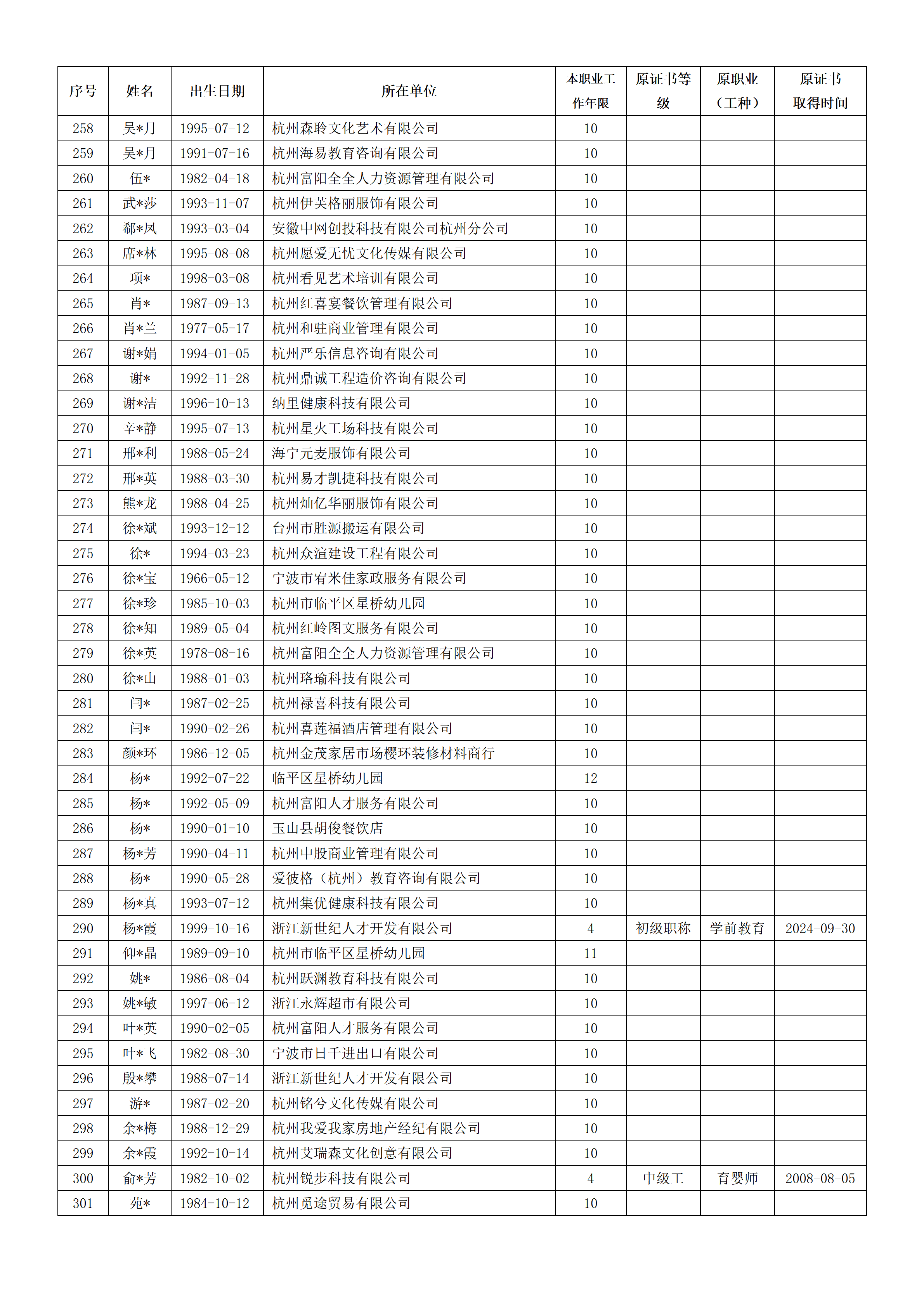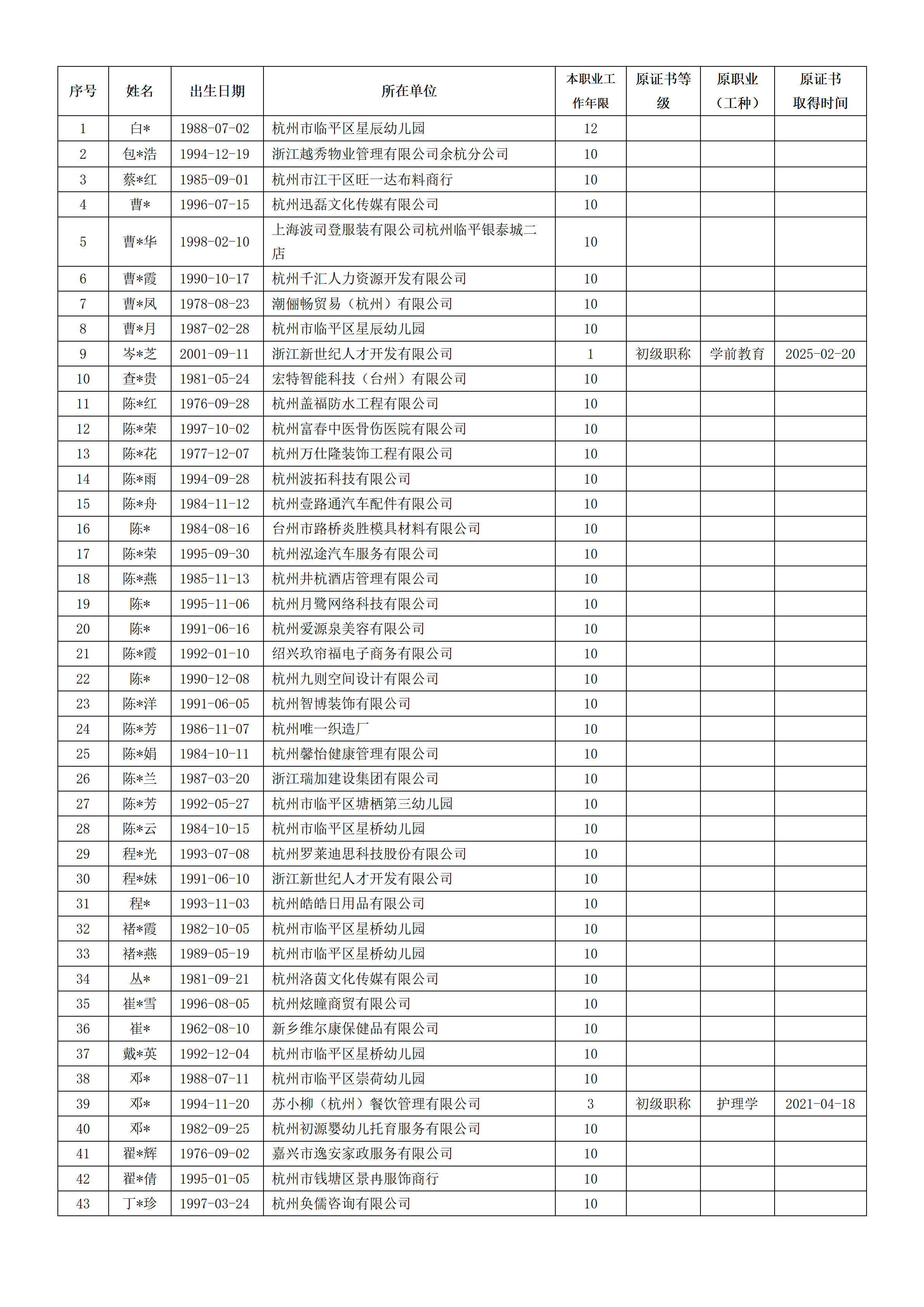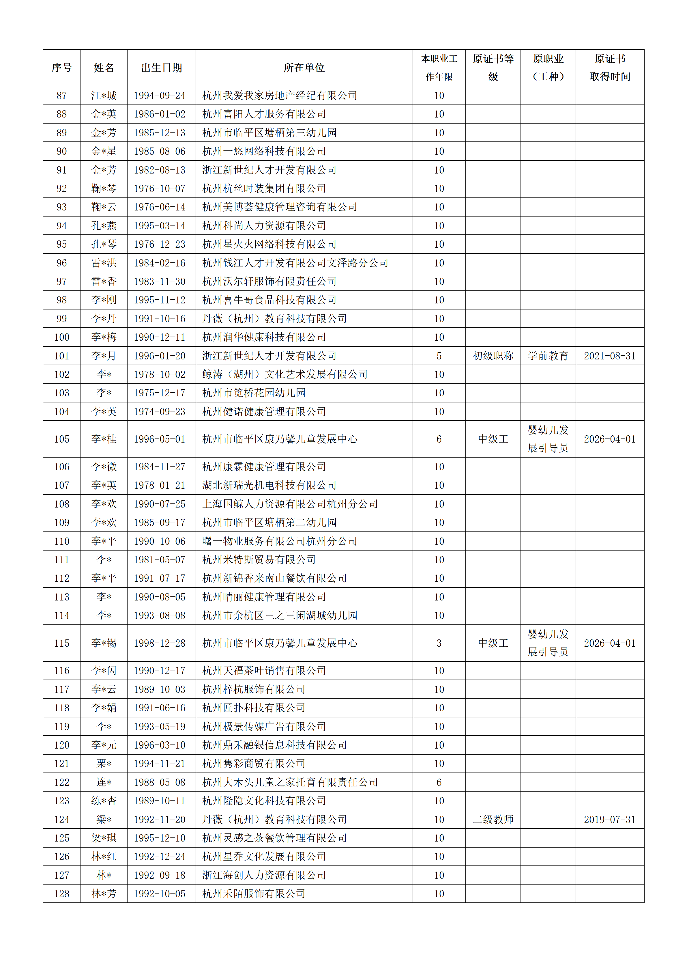 2026年4月职业技能等级认定婴幼儿发展引导员中级工(四级)资格审核通过考生名单公示