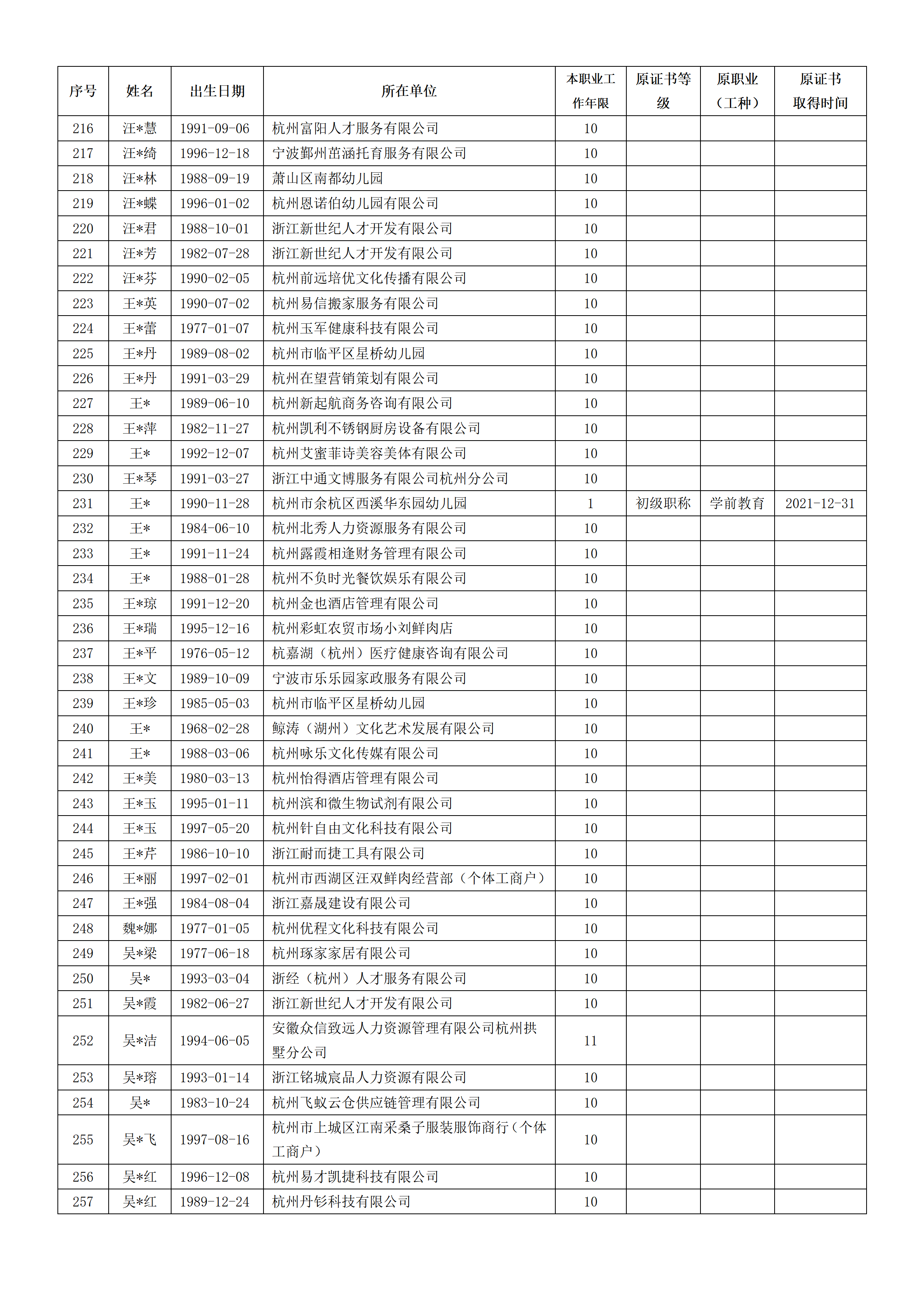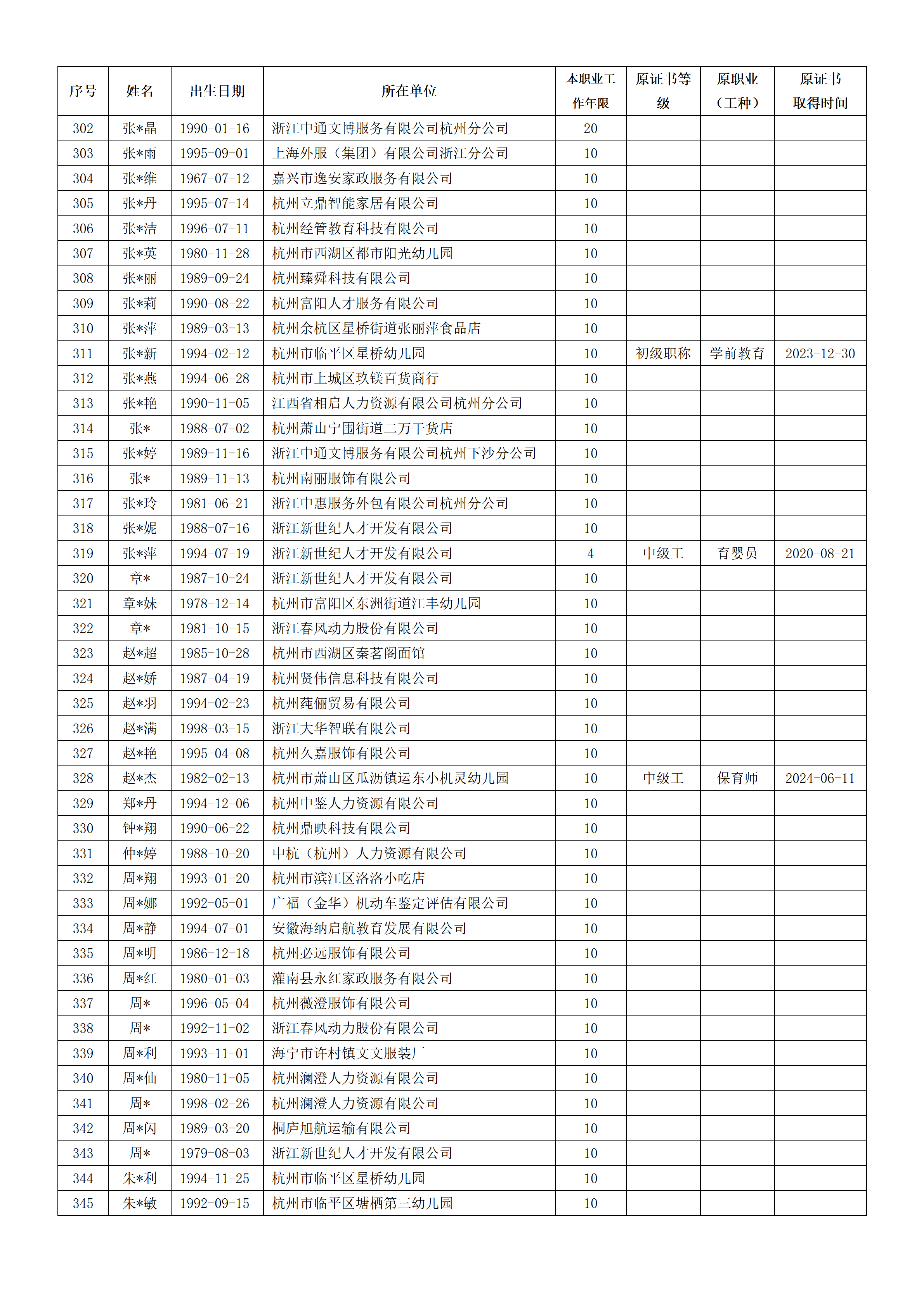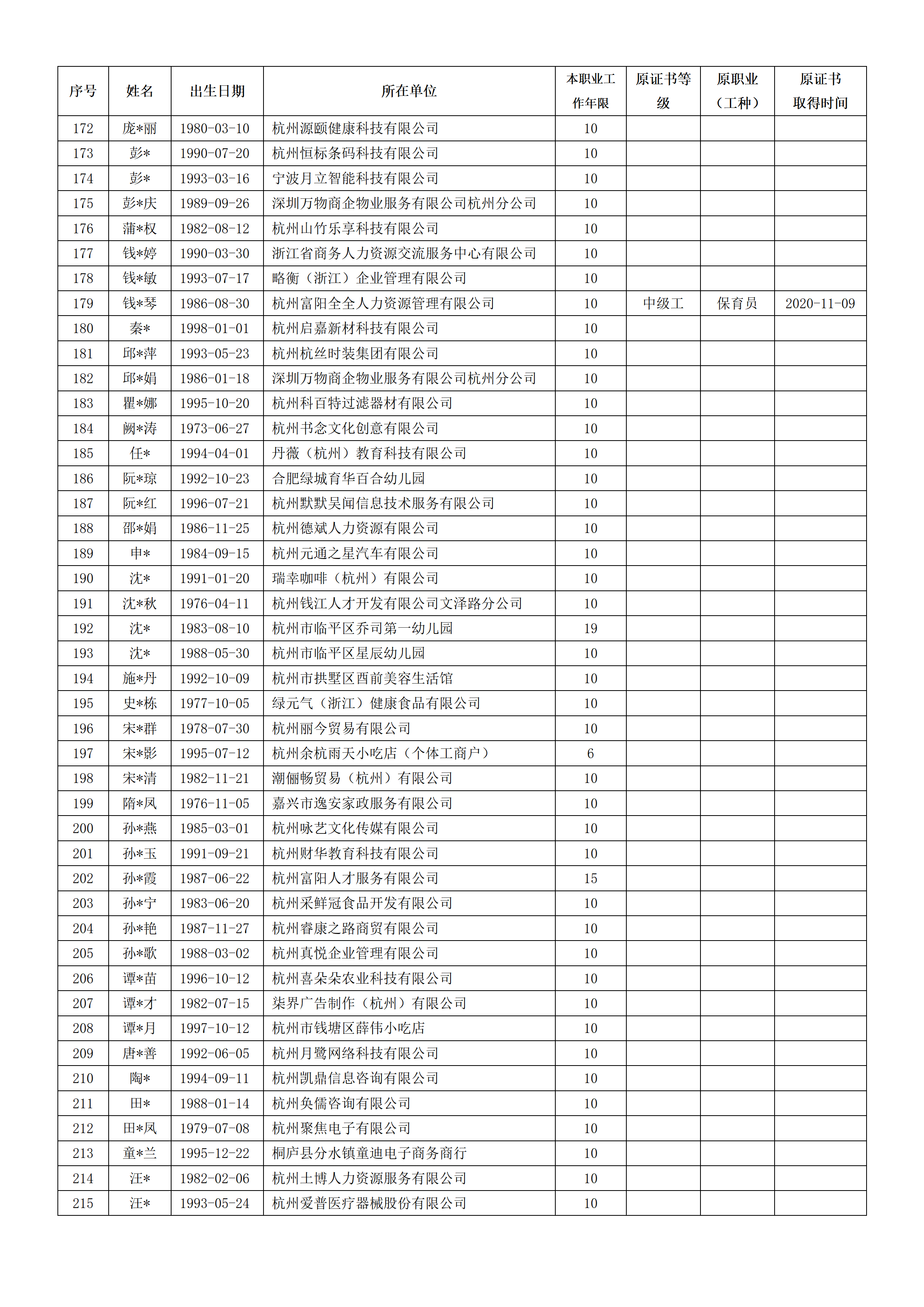 2026年4月职业技能等级认定婴幼儿发展引导员中级工(四级)资格审核通过考生名单公示